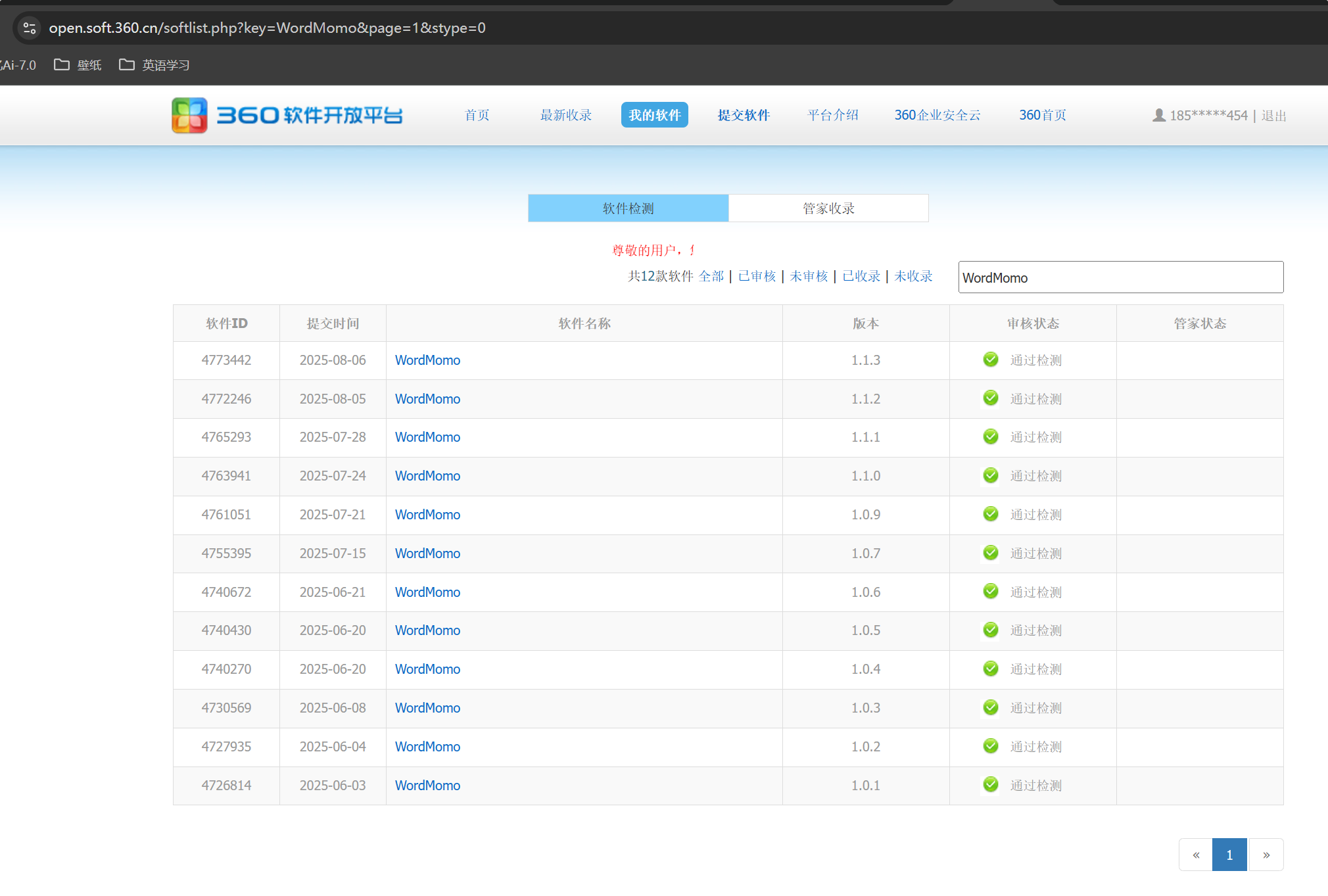 WordMomo发布的每一个版本都会提交到360安全检测,同时也已经通过联想PC商店安全检测,由于未找到对于Windows Defender主动提交软件检测的网站入口,可能会出现下载软件时被拦截的情况