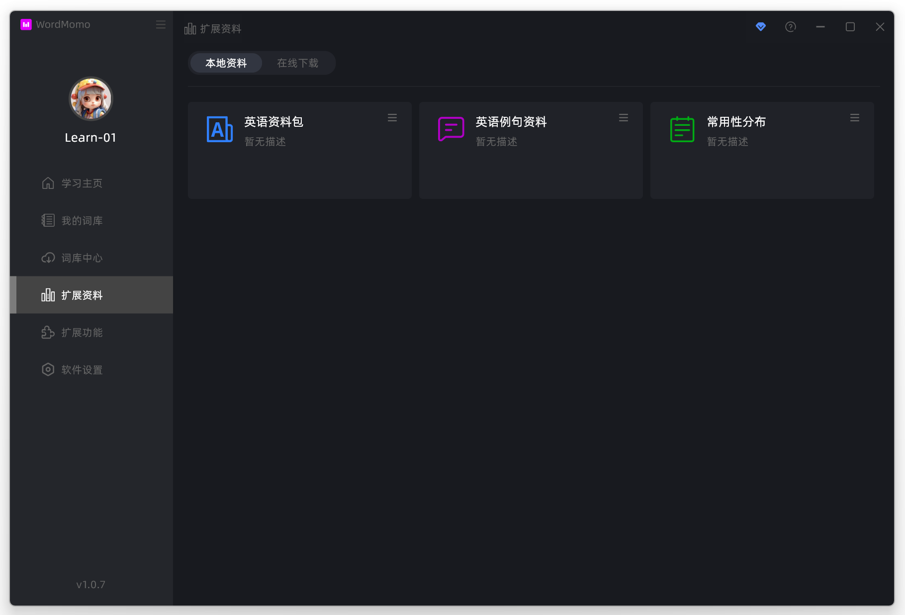 扩展资料包是WordMomo软件内置的一种资料,当用户创建一个空白词库,添加单词的时候,这个时候可以只需要输入单词就行了,译文则不需要输入