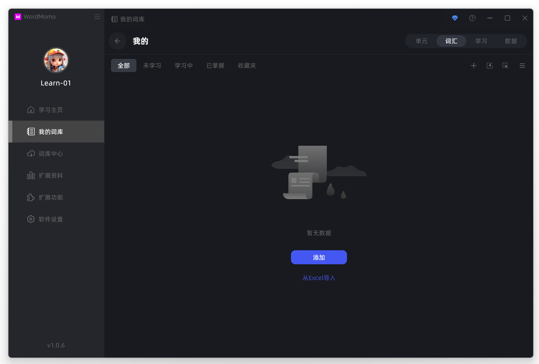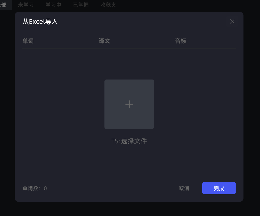 创建一个新词库之后,可以切换到全部选项 , 然后可以看到下方显示从Excel导入,如果这个词库已经有单词了,可以点击右边+号旁边的图标,也可以打开从Excel导入窗口
