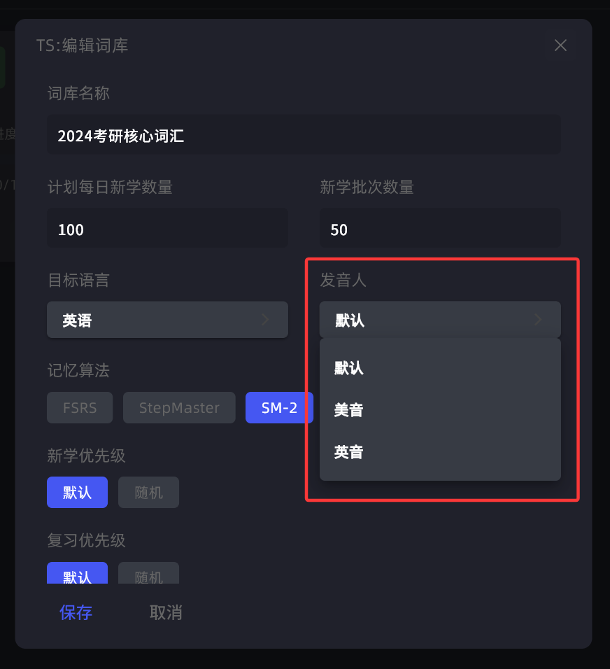 我们创建一个词库的时候,会配置这个词库的语言以及语言对应的发音人,本章内容简单介绍一下如何将默认的美式发音更改为英式发音